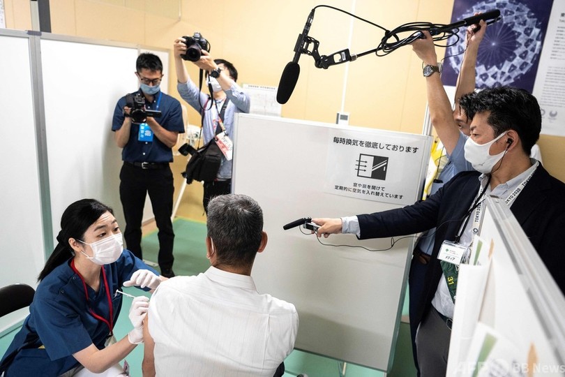 国内でこれまでに接種が完了した人は人口の3.5%未満、1回目の接種を終えた人は10%強にとどまっている。今月末までに警視庁や消防庁の職員ら11万人が接種を受ける見通し。(c)AFP
