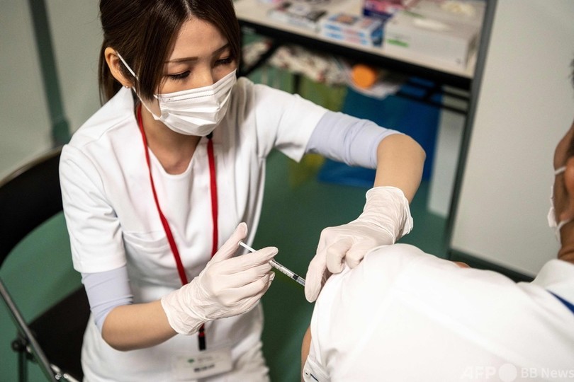国内でこれまでに接種が完了した人は人口の3.5%未満、1回目の接種を終えた人は10%強にとどまっている。今月末までに警視庁や消防庁の職員ら11万人が接種を受ける見通し。(c)AFP