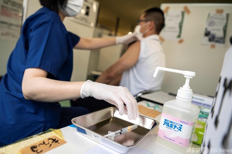 国内でこれまでに接種が完了した人は人口の3.5%未満、1回目の接種を終えた人は10%強にとどまっている。今月末までに警視庁や消防庁の職員ら11万人が接種を受ける見通し。(c)AFP