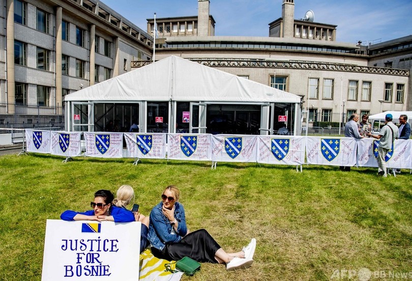 法廷前には、犠牲者の母親らが集結。遺族団体の代表はAFPに対し、「きょうは私たち母親だけでなく、バルカン(Balkans)全体、欧州、世界にとって歴史的な日だ」と語った。(c)AFP