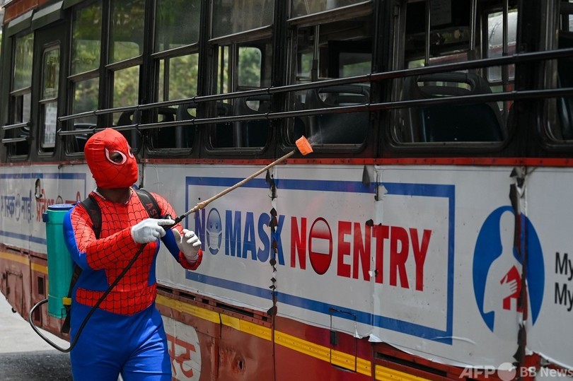 【6月13日 AFP】インド西部ムンバイ(旧ボンベイ)のスラムで、アショーク・クルミ(Ashok Kurmi)さん(37)はピエロの格好をして、子どもたちに新型コロナウイルス対策を広めている。