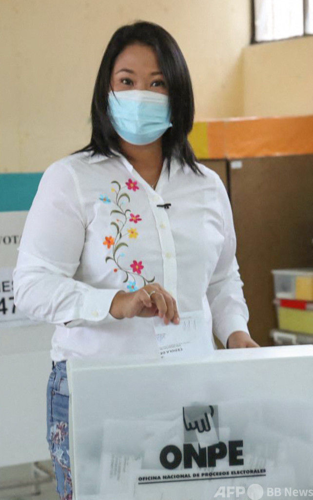 大統領選の決選投票では、開票率99%以上の時点で、対立候補の急進左派ペドロ・カスティジョ(Pedro Castillo)氏が50.2%、フジモリ氏が49.8%を得票。カスティジョ氏が僅差でリードしているが、フジモリ氏は約50万票に関わる不正があったと主張している。(c)AFP