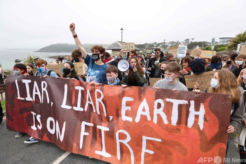 トゥンベリさんはこの日、他の場所でも存在感を発揮。コーンウォール・ファルマス(Falmouth)では、トゥンベリさんが立ち上げた気候変動対策を求める運動「フライデーズ・フォー・フューチャー(Fridays For Future、未来のための金曜日)」の一環として青少年ら約100人がデモを行った。デモ隊は、G7による気候変動対策の不足を非難。「代わりになる星はない」などと書かれたプラカードを掲げた。