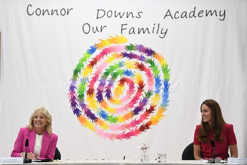 バイデン氏とキャサリン妃が対面するのは初めて。2人はG7サミットが開かれている英南西部コーンウォール(Cornwall)・カービスベイ(Carbis Bay)に近いヘイル(Hayle)にある小学校を訪問した。