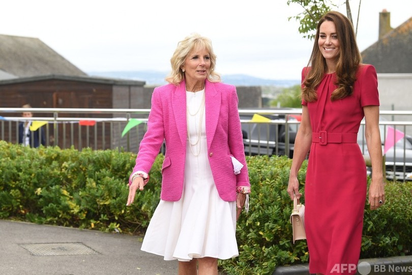 バイデン氏とキャサリン妃が対面するのは初めて。2人はG7サミットが開かれている英南西部コーンウォール(Cornwall)・カービスベイ(Carbis Bay)に近いヘイル(Hayle)にある小学校を訪問した。