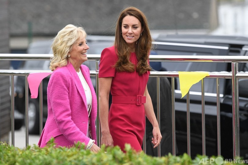 バイデン氏とキャサリン妃が対面するのは初めて。2人はG7サミットが開かれている英南西部コーンウォール(Cornwall)・カービスベイ(Carbis Bay)に近いヘイル(Hayle)にある小学校を訪問した。