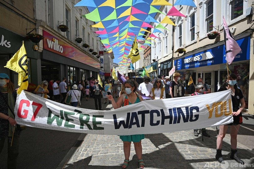 【6月13日 AFP】英コーンウォール(Cornwall)で12日、先進7か国(G7)首脳会議(サミット)に参加した各国首脳に気候変動対策や生物多様性の保全を訴えようと、大規模なデモが行われた。