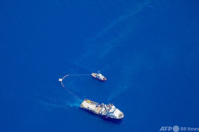 当局者はAFPに対し、「油膜は分散しており、現在約10キロ沖に位置している。海流によって状況が変わることもあるため、引き続き注意していく必要がある」と述べた。(c)AFP