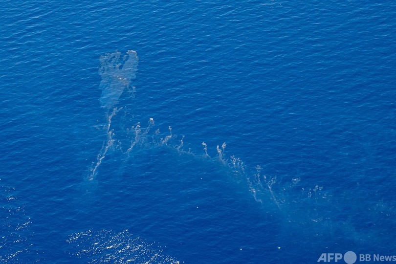 当局者はAFPに対し、「油膜は分散しており、現在約10キロ沖に位置している。海流によって状況が変わることもあるため、引き続き注意していく必要がある」と述べた。(c)AFP
