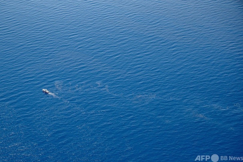 当局者はAFPに対し、「油膜は分散しており、現在約10キロ沖に位置している。海流によって状況が変わることもあるため、引き続き注意していく必要がある」と述べた。(c)AFP