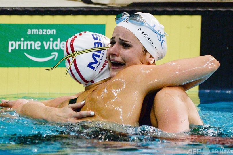 マッケオンは先日歴代4位の記録を出した200メートル背泳ぎ、今季世界最高記録をマークしている200メートル個人メドレーでも五輪出場が見込まれており、複数種目で金メダルの有力候補になりつつある。(c)AFP