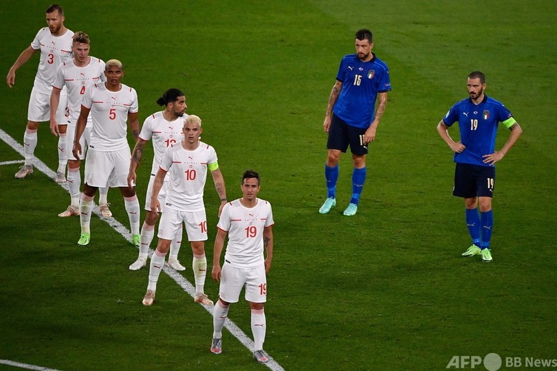 20日に前回4強のウェールズをスタディオ・オリンピコ(Stadio Olimpico)に迎え撃つイタリアは、引き分け以上でグループ首位通過が決まる。敗れたスイスは、アゼルバイジャンのバクーでトルコに勝利しなければ、グループリーグ敗退が決定する。(c)AFP
