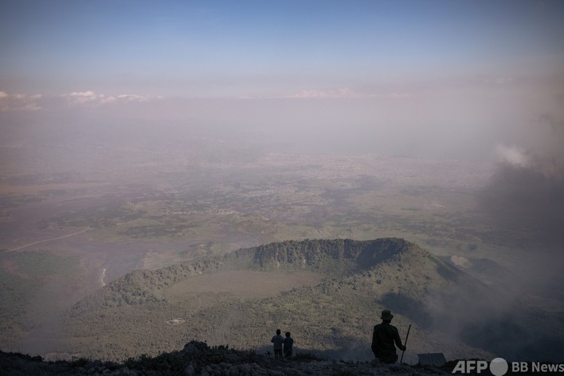 【今日の1枚】安全確認のため火口へ、コンゴのニーラゴンゴ火山