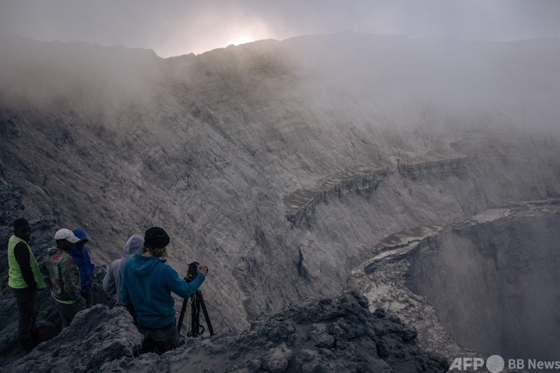 【今日の1枚】安全確認のため火口へ、コンゴのニーラゴンゴ火山