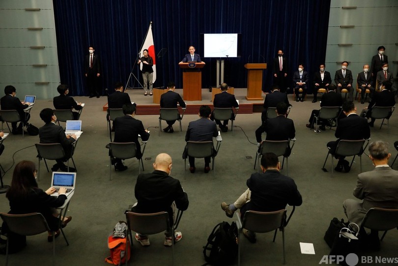 【6月17日 AFP】(写真追加)菅義偉(Yoshihide Suga)首相は17日、東京などに出されている緊急事態宣言を、適用期限の20日に解除すると決定した。東京五輪開幕まで約1か月前の解除となる。