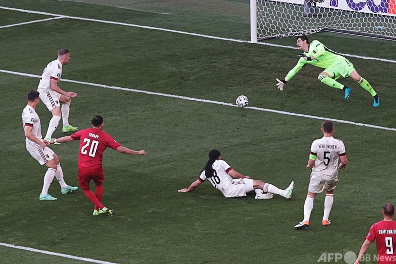 デンマークのユセフ・ポールセン(Yussuf Poulsen)に開始2分の先制ゴールを許したベルギーだったが、けがの影響もあってハーフタイムの途中交代で大会初出場となったデ・ブルイネが、55分にトルガン・アザール(Thorgan Hazard)の同点弾を演出すると、70分には自ら逆転ゴールを決めた。