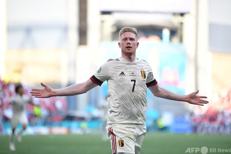 デンマークのユセフ・ポールセン(Yussuf Poulsen)に開始2分の先制ゴールを許したベルギーだったが、けがの影響もあってハーフタイムの途中交代で大会初出場となったデ・ブルイネが、55分にトルガン・アザール(Thorgan Hazard)の同点弾を演出すると、70分には自ら逆転ゴールを決めた。