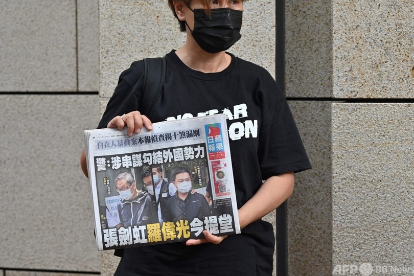 【6月19日 AFP】外国勢力と共謀した罪で香港当局に起訴された民主派の現地紙「蘋果日報(アップル・デーリー、Apple Daily)」の幹部2人が19日、出廷した。同紙は中国当局に批判的な論調で知られ、2人は17日に香港国家安全維持法(国安法)違反容疑で逮捕され、翌日に起訴されていた。