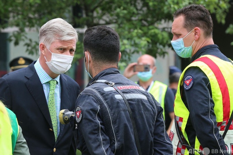 19日にはベルギーのフィリップ国王(King Philippe)がアレクサンダー・デクロー(Alexander de Croo)首相に付き添われて現場を訪れた。(c)AFP