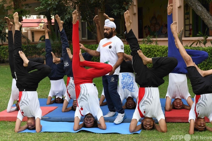 【6月20日 AFP】21日は「国際ヨガの日(International Yoga Day)」。インド・アムリツァル(Amritsar)では19日、イベントのリハーサルを行うヨガ愛好家らの姿が見られた。(c)AFP
