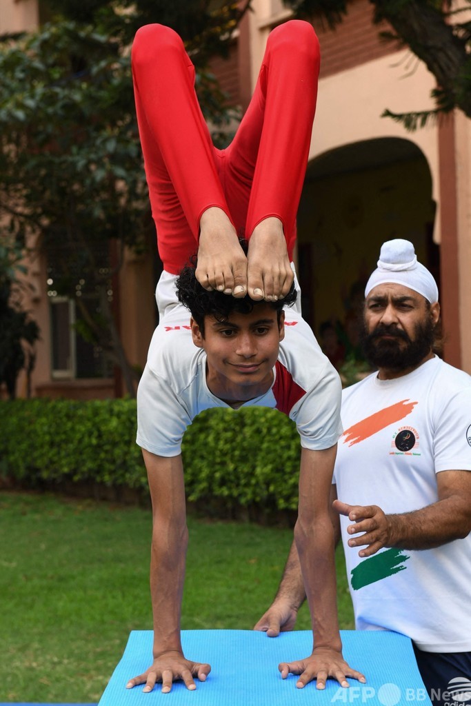【6月20日 AFP】21日は「国際ヨガの日(International Yoga Day)」。インド・アムリツァル(Amritsar)では19日、イベントのリハーサルを行うヨガ愛好家らの姿が見られた。(c)AFP