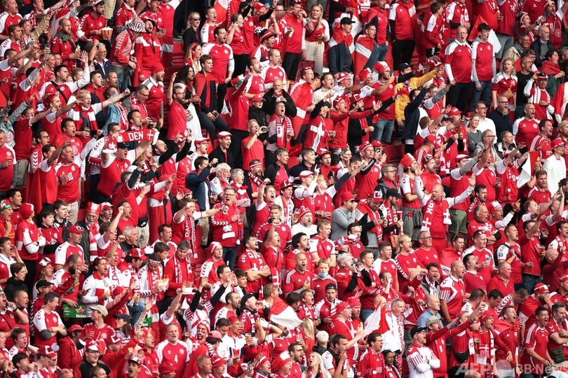 フィンランドとの初戦でクリスティアン・エリクセン(Christian Eriksen)が倒れたことに精神的ショックを受けていたデンマークは、グループステージをお祭りムードで終わらせることができるゴールを決めると、ファンたちは狂喜乱舞して互いにビールをかけ合った。