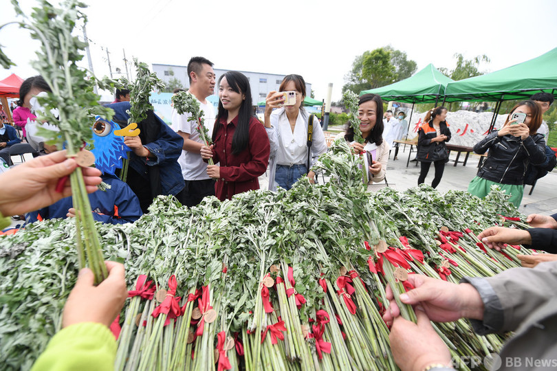会場では、ケーキやクッキーの試食のほかヨモギの灸(きゅう)の体験、厄よけの香袋の配布などが行われ、多くの来場者でにぎわっていた。(c)CNS/JCM/AFPBB News