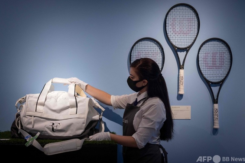 【6月22日 AFP】男子テニスのロジャー・フェデラー(Roger Federer、スイス)が過去の大会で使用したラケットやウエアなどが21日、英ロンドンの競売大手クリスティーズ(Christie’s)で報道陣に公開された。(c)AFP