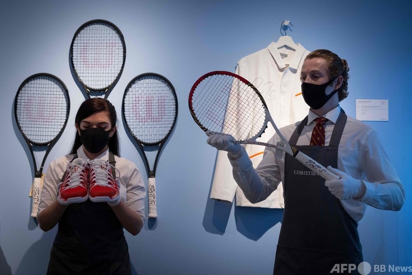 【6月22日 AFP】男子テニスのロジャー・フェデラー(Roger Federer、スイス)が過去の大会で使用したラケットやウエアなどが21日、英ロンドンの競売大手クリスティーズ(Christie’s)で報道陣に公開された。(c)AFP