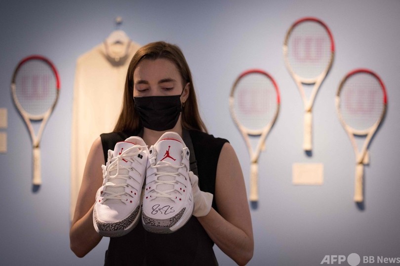 【6月22日 AFP】男子テニスのロジャー・フェデラー(Roger Federer、スイス)が過去の大会で使用したラケットやウエアなどが21日、英ロンドンの競売大手クリスティーズ(Christie’s)で報道陣に公開された。(c)AFP