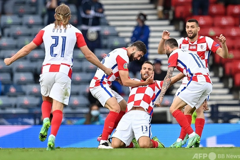 【6月23日 AFP】サッカー欧州選手権(UEFA Euro 2020)は22日、グループDの試合が行われ、イングランドはラヒーム・スターリング(Raheem Sterling)の得点でチェコを1-0で下し、同組首位通過を決めた。一方、ルカ・モドリッチ(Luka Modric)のミドルシュートなどでスコットランドに3-1で勝利したクロアチアも、決勝トーナメントに進むことになった。