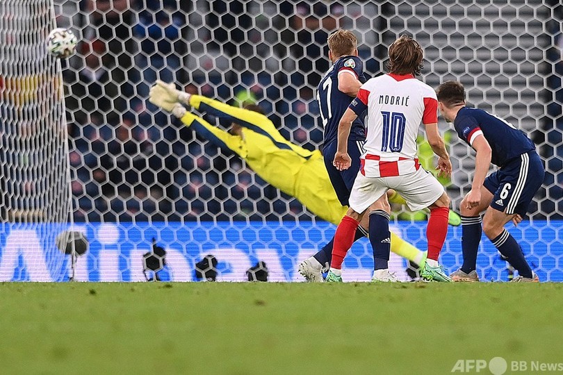 【6月23日 AFP】サッカー欧州選手権(UEFA Euro 2020)は22日、グループDの試合が行われ、イングランドはラヒーム・スターリング(Raheem Sterling)の得点でチェコを1-0で下し、同組首位通過を決めた。一方、ルカ・モドリッチ(Luka Modric)のミドルシュートなどでスコットランドに3-1で勝利したクロアチアも、決勝トーナメントに進むことになった。