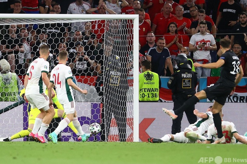 【6月24日 AFP】サッカー欧州選手権(UEFA Euro 2020)は23日、グループFの試合が行われ、ドイツは途中出場したレオン・ゴレツカ(Leon Goretzka)の終了間際のゴールでハンガリーと2-2で引き分けて2位で死の組を突破。決勝トーナメント1回戦ではイングランドとの対戦が決まった。