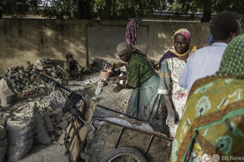 【7月5日 AFP】片方の手に重いハンマーを持ち、もう一方の手に持ったコンクリートの塊を粉々に砕く女性たち。アフリカ中部チャドの作業場での光景だ。