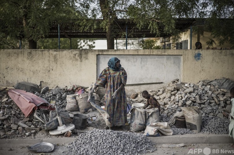 【7月5日 AFP】片方の手に重いハンマーを持ち、もう一方の手に持ったコンクリートの塊を粉々に砕く女性たち。アフリカ中部チャドの作業場での光景だ。
