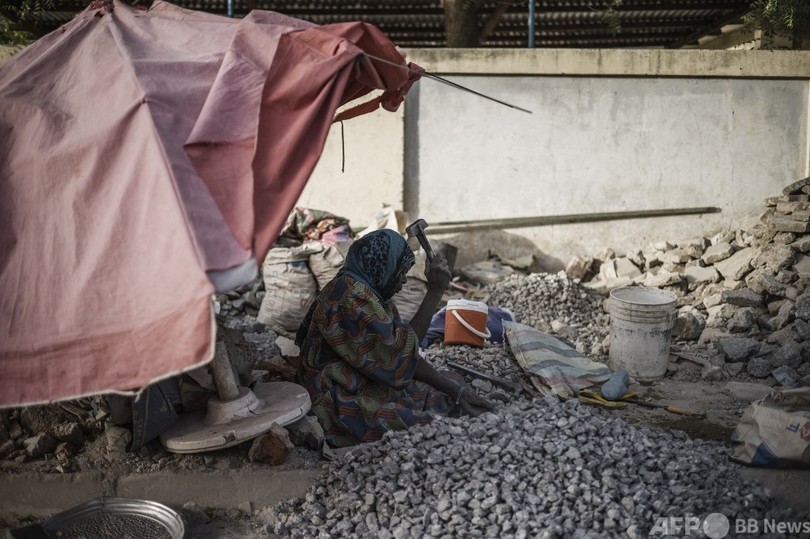 【7月5日 AFP】片方の手に重いハンマーを持ち、もう一方の手に持ったコンクリートの塊を粉々に砕く女性たち。アフリカ中部チャドの作業場での光景だ。