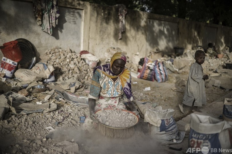 高温と粉じん マスク無しで建設廃材を砕く女性たち チャド
