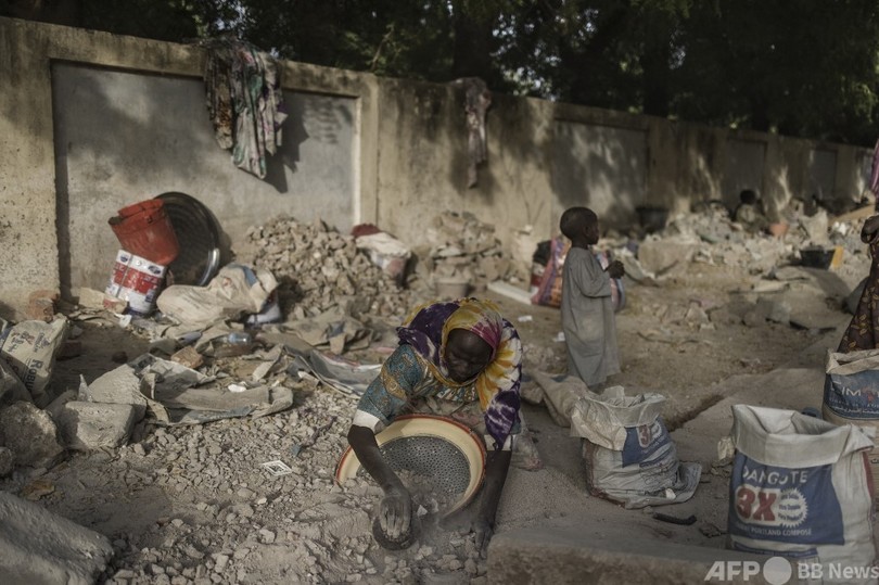 高温と粉じん マスク無しで建設廃材を砕く女性たち チャド