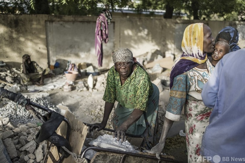 【7月5日 AFP】片方の手に重いハンマーを持ち、もう一方の手に持ったコンクリートの塊を粉々に砕く女性たち。アフリカ中部チャドの作業場での光景だ。