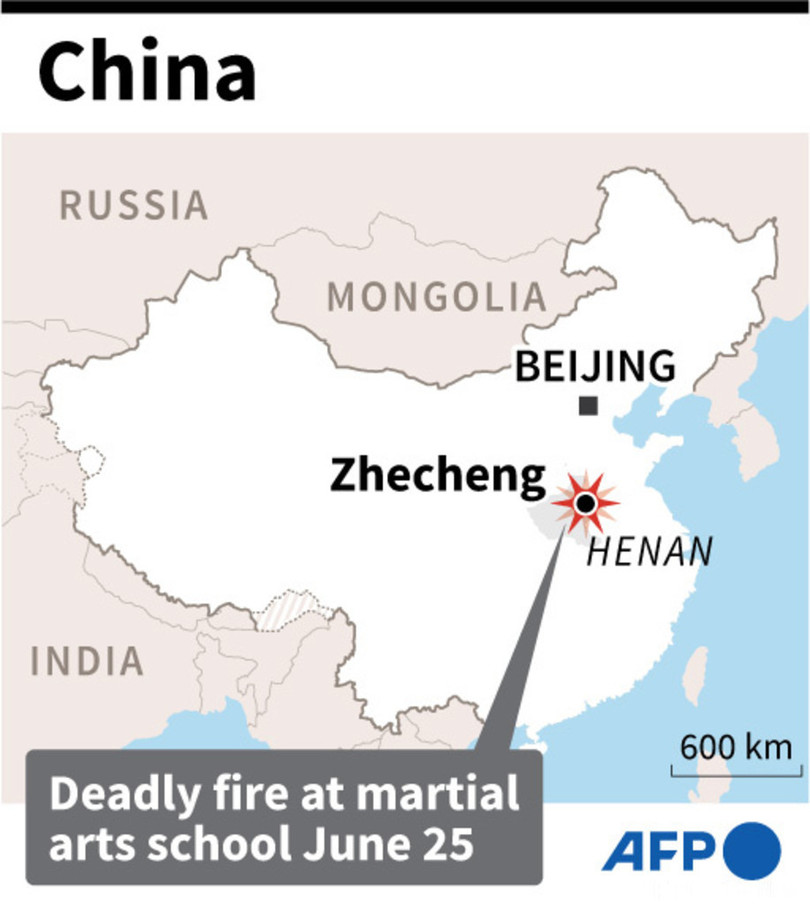 ニュース 社会 中国の武術学校で火災、18人死亡 2021年6月25日 13:06 発信地:北京/中国 [ 中国 中国・台湾 ] このニュースをシェア 火災が発生した中国・河南省柘城県の武術学校の位置を示した地図(2021年6月25日作成)。(c)AFP 【6月25日 AFP】中国中部河南(Henan)省柘城(Zhecheng)県の武術学校で25日早朝、火災が発生し、少なくとも18人が死亡、16人が負傷した。県当局が発表した。 既に火は消し止められ、当局が出火原因を調査している。警察は武術学校の責任者を逮捕したという。 地元メディアによると、犠牲者の多くは7~16歳の寄宿生。北京のニュース配信プラットフォーム「今日頭条(Toutiao)」は、出火時に校内には34人の寄宿生がいたと伝えている。(c)AFP 社会 一覧へ> メディア・報道関係・法人の方向け 写真・動画 購入のお問合せ>