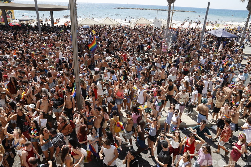 プライドパレードに推定10万人、要請無視のノーマスク多数 イスラエル