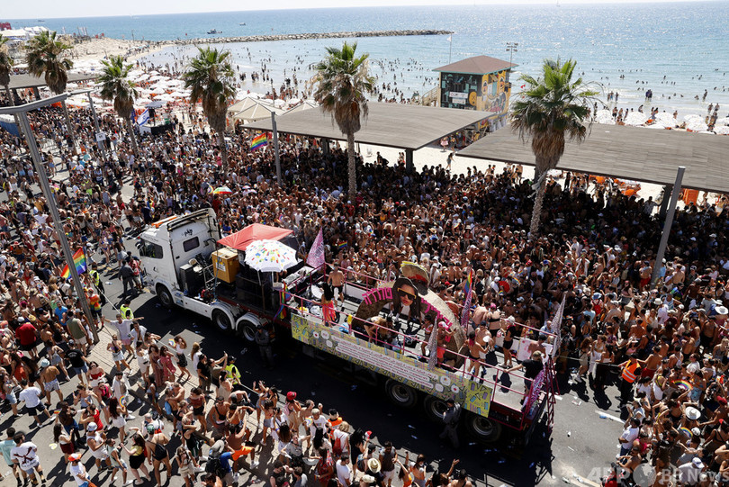 プライドパレードに推定10万人、要請無視のノーマスク多数 イスラエル