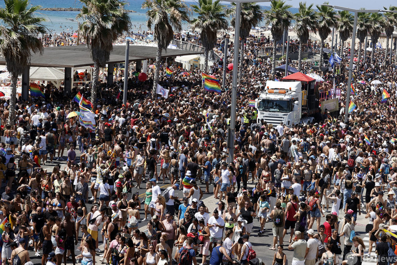 プライドパレードに推定10万人、要請無視のノーマスク多数 イスラエル