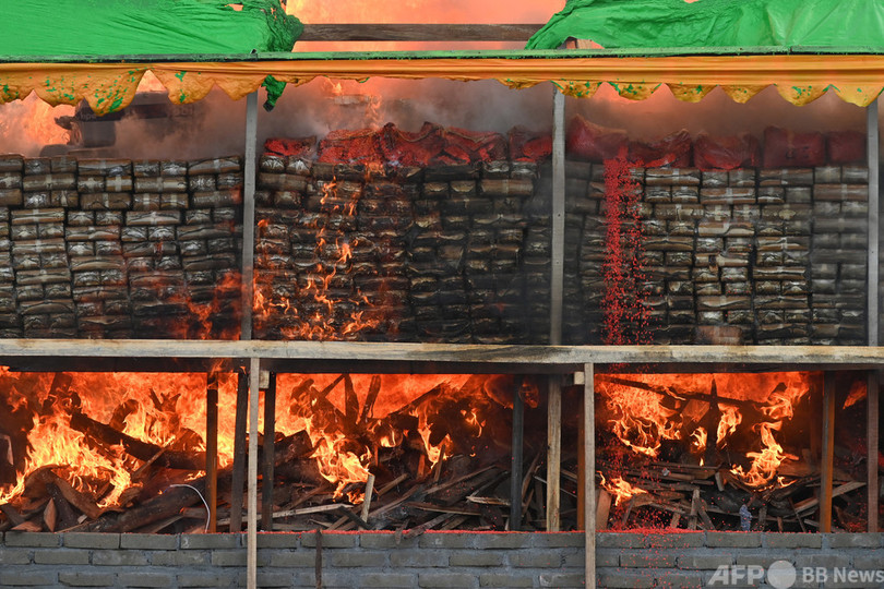 ニュース 社会 ミャンマー、違法薬物を焼却処分 国際薬物乱用・不正取引防止デー 2021年6月26日 20:15 発信地:ヤンゴン/ミャンマー [ ミャンマー アジア・オセアニア ] このニュースをシェア ‹ › ❮ 8/10 ❯ ミャンマーの最大都市ヤンゴンで、国連の国際薬物乱用・不正取引防止デーに合わせて開かれた式典で、焼却処分される違法薬物(2021年6月26日撮影)。(c)STR / AFP 画像作成中 ! 【6月26日 AFP】ミャンマー当局は26日、国連(UN)の国際薬物乱用・不正取引防止デーに合わせ、押収した違法薬物を焼却処分した。(c)AFP 社会 一覧へ> メディア・報道関係・法人の方向け 写真・動画 購入のお問合せ>