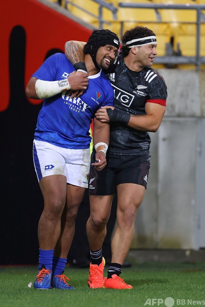 マオリ・オールブラックスとサモアは次週、トンガ対オールブラックス(All Blacks、ニュージーランド代表の愛称)戦の前座試合として、オークランド(Auckland)で再戦する。その後サモアとトンガの両国は、W杯フランス大会(Rugby World Cup 2023)に出場するオセアニア1位を懸けて激突する。(c)AFP