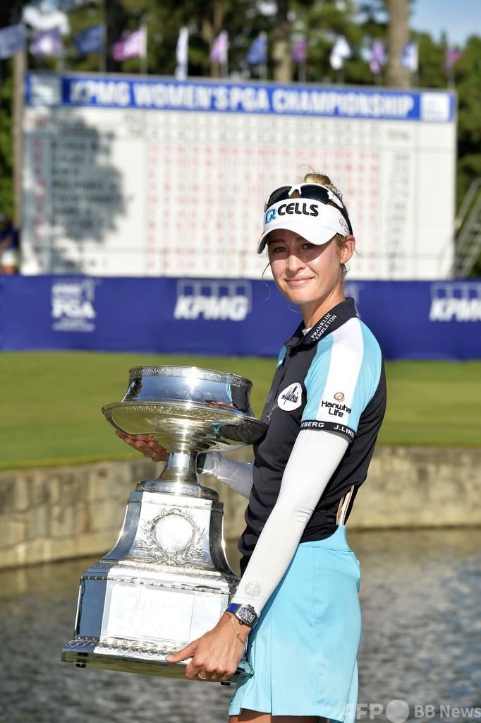 【6月28日 AFP】女子ゴルフ米国ツアーメジャー第3戦、全米女子プロゴルフ選手権(KPMG Women's PGA Championship 2021)は27日、米ジョージア州アトランタ(Atlanta)のアトランタ・アスレチッククラブ(Atlanta Athletic Club、パー72)で最終日が行われ、ネリー・コルダ(Nelly Korda、米国)がメジャー初制覇を果たし、2014年以来7年ぶりに米国の選手が世界ランキング1位に立つことが決まった。