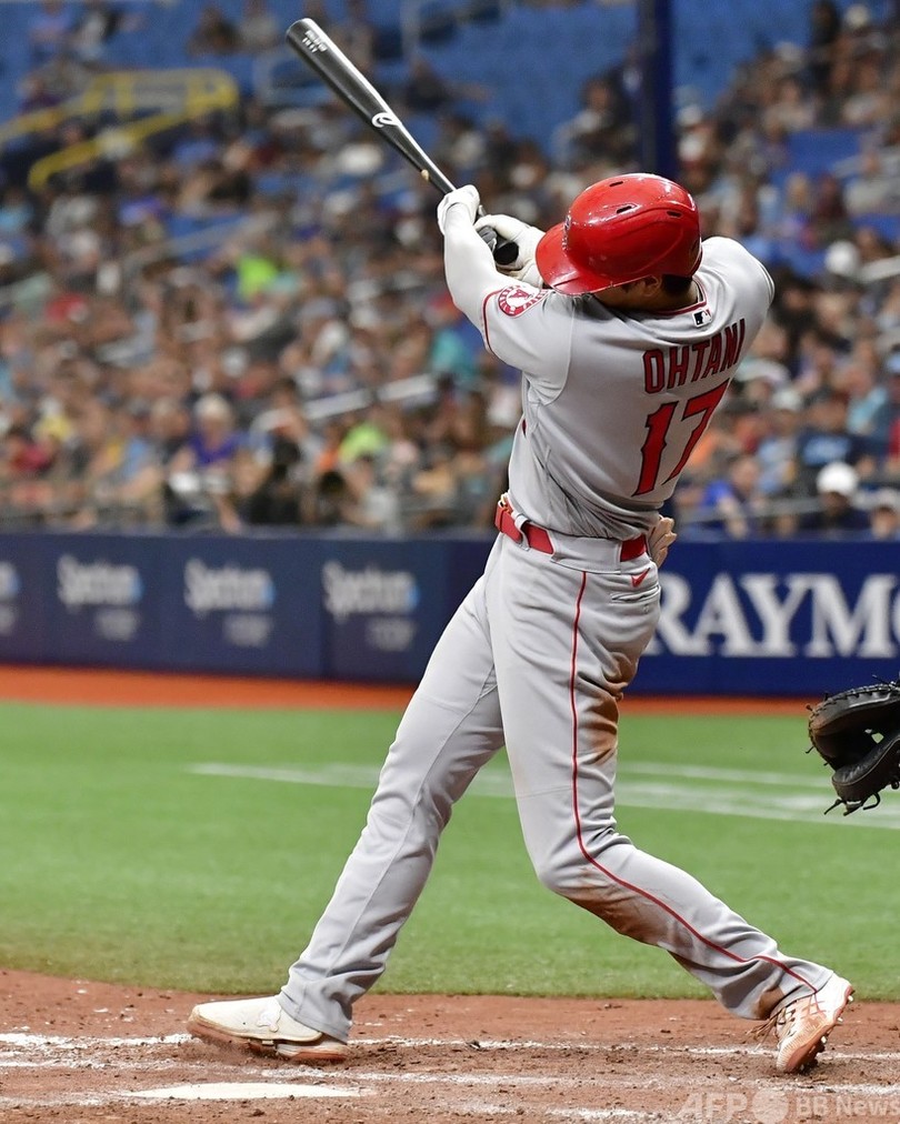 そして迎えた9回には、逆方向へ117メートルの25号本塁打を放って4打数3安打とした。勝利したエンゼルスは連敗を5で止め、レイズ戦今季7試合目で初白星を挙げている。(c)AFP