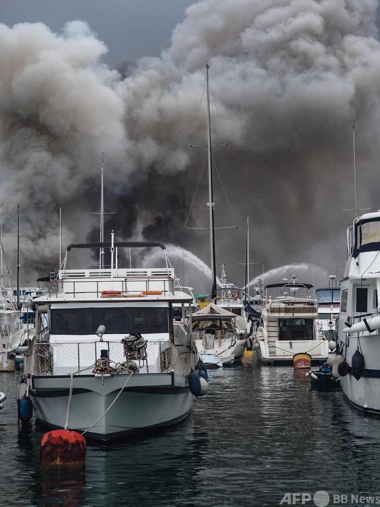 香港の港で火災、船10隻以上焼ける