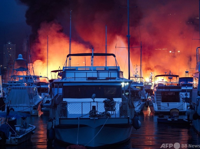 火災が起きたのは、台風襲来時の避難港となっている香港仔避風塘(Aberdeen Typhoon Shelter)。炎上した船の多くは、香港人や外国人が普段から住居として使用していた。消防当局によると、火は約6時間後に消し止められた。(c)AFP