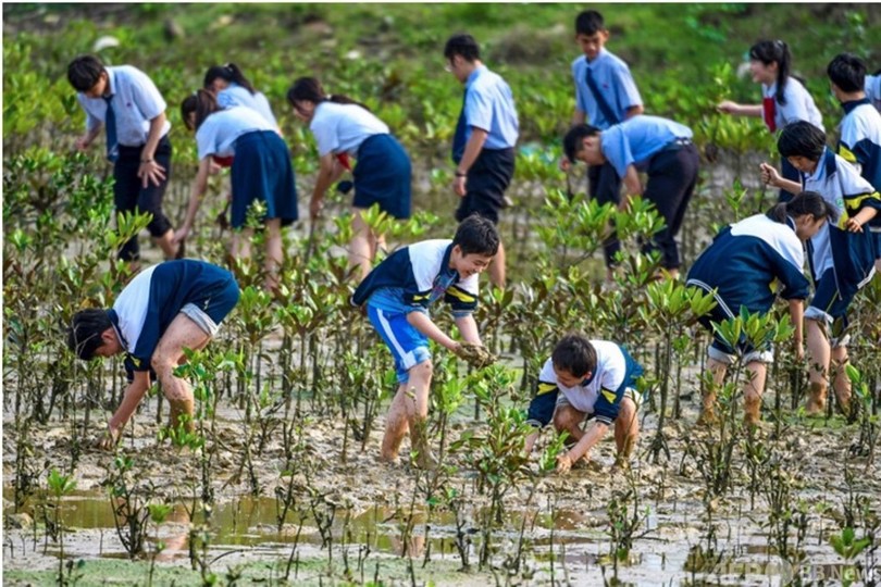 マングローブ林の典型的な海洋生態系は世界100か国以上に分布し、中国では広東省(Guangdong)、広西チワン族自治区(Guangxi Zhuang Autonomous Region)、海南省(Hainan)などに集中している。現在、中国のマングローブ林で記録されている底生生物は800種を超え、その中には絶滅危惧種も少なくない。中国は世界で数少ないマングローブ林の面積が純増している国の一つで、マングローブ林の保護と修復を強化することが中国の海洋生態系の保護・修復の重要な内容となっている。自然資源部は沿海の関係地方政府に「ブルーベイ」の整備行動を実施するよう指導した。中国には現在、マングローブ林を保護対象とする保護地が50以上設置されている。